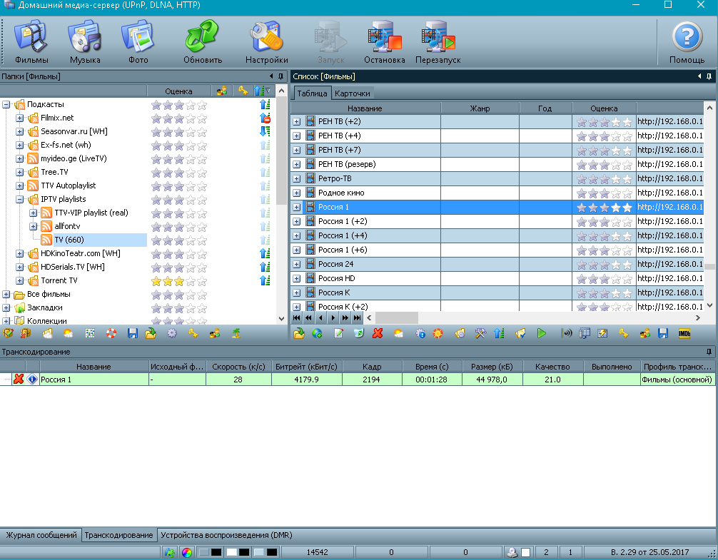 Это какой то ..... Поработало всё с пол часа и всё перестало. На тв выскакивает окно файл не доступен для чтения или не найден, а на компе в графе транскодирование всё по нулям.