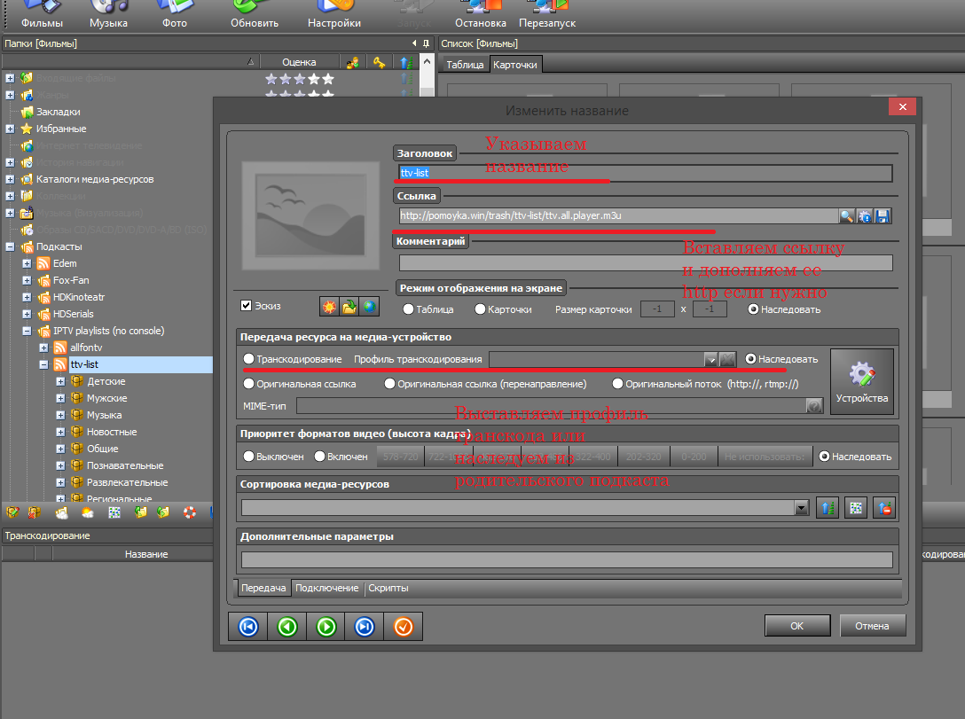 Добавляем плейлист в подкаст IPTV playlists