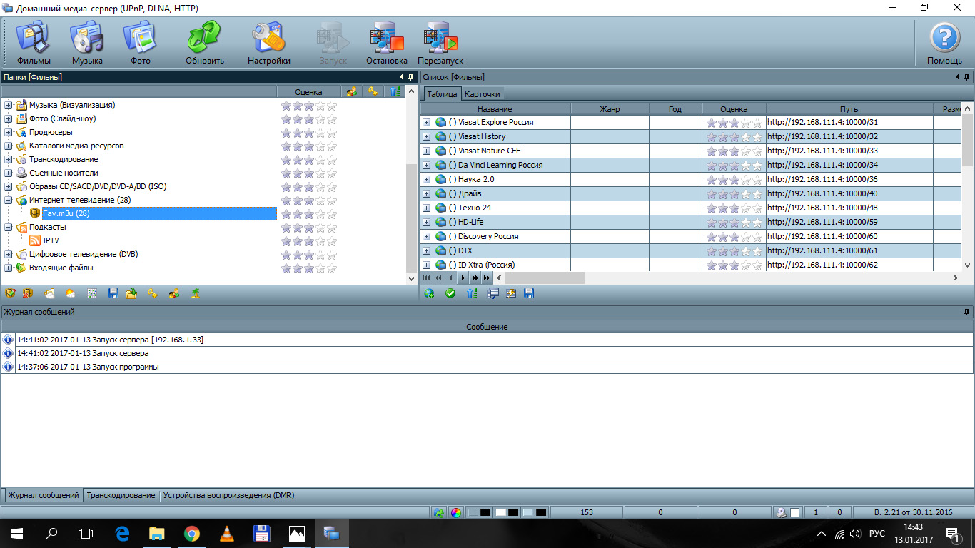 Никак не могу настроить IPTV через HMS. Что только не перепробовал. Папка "Интернет телевидение" всегда пустая (это на телевизоре)