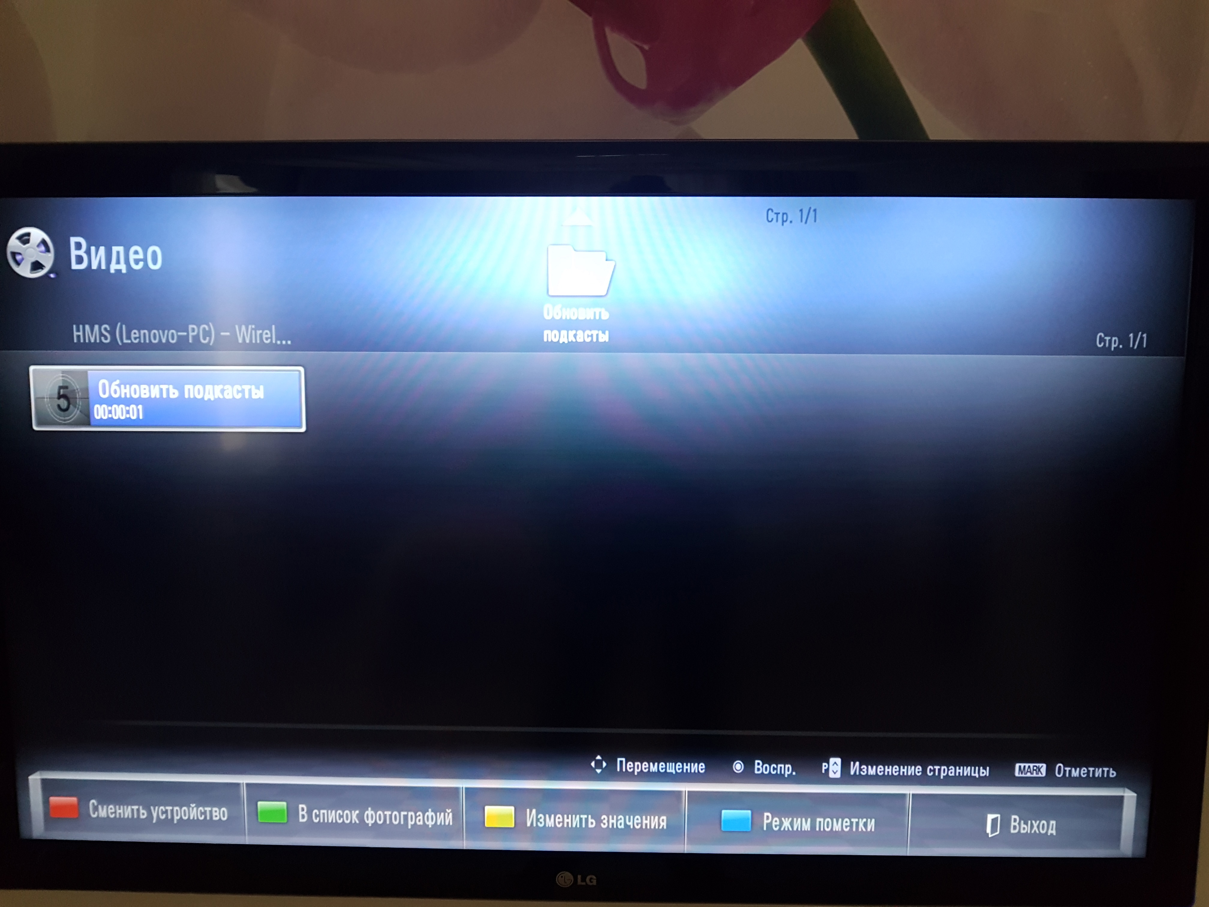 3. Если захожу в подкасты то там тоже ничего нет, кроме обновления подкастов, нажимаю обновить подкасты на телевизоре, выскакивает на весь экран галоска в зеленом кружке ...