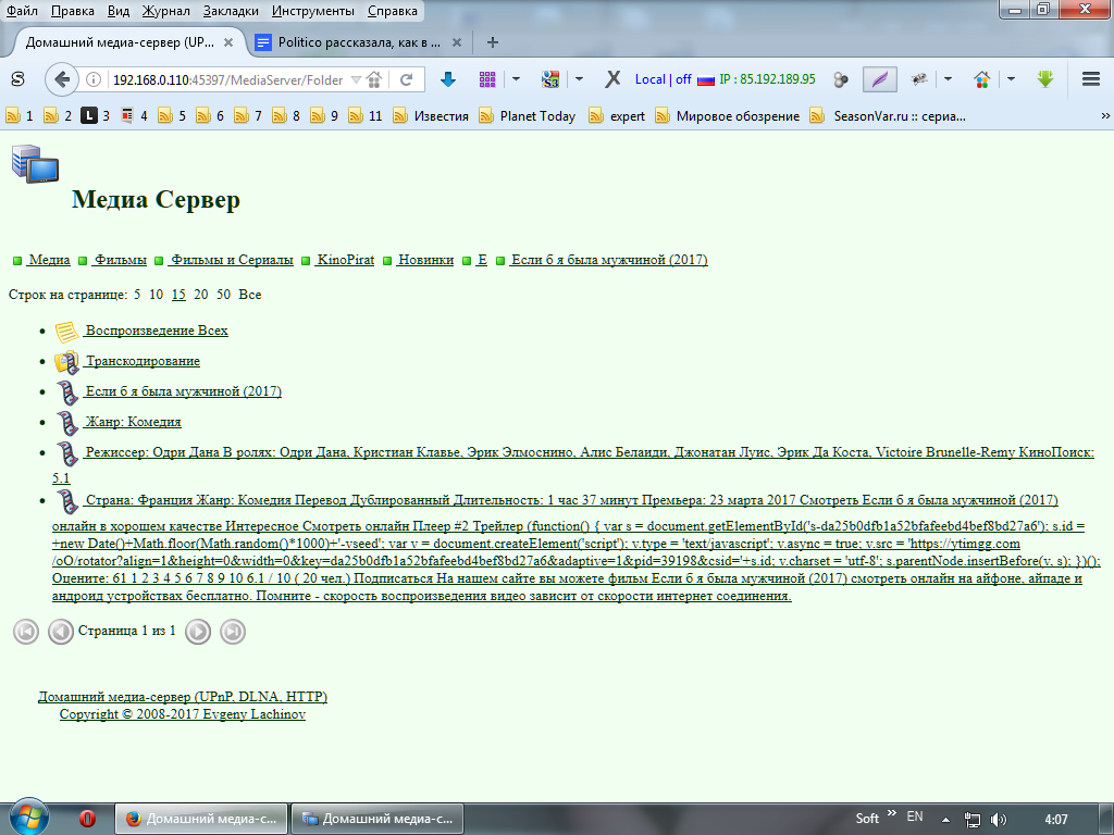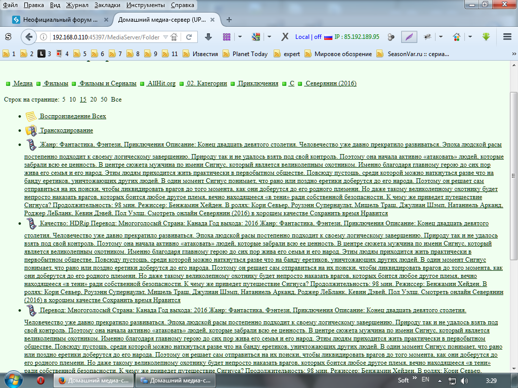 Приветсвую Вас Михаил!Установил Ваши подкасты NanoKino.net и AllHit.org.Тьюнер не захотел с ними работать.При попытке на подкасте AllHit.org открыть папку с фильмом тьюнер виснет,не реагирует на пульт,в чувство приводиться перегрузкой.При попытке открыть папку с фильмом на подкасте NanoKino.net тьюнер уходить на перегрузку.Ну думаю интересно чукчи пляшут.Стал разбираться с подкастами через браузер сравнивать с другими работающими подкастами и заметил разницу в подкастах.В подкасте AllHit.org в папке с фильмом загружено много информации о фильме(смотрите скриншот),тоже самое в подкасте NanoKino.net, там правдо информации поменьше(смотрите скриншот),такая же история с подкастом Kinopirat(смотрите скриншот).Посмотрите скриншоты работающих у меня подкастов Allserials.tv и Kinopirat,здесь только ссылки на информацию,которую можно загрузить отдельно при желании.Значить удалил я часть скрипта отвечающего за загрузку информации на подкасте AllHit.org и всё подкаст заработал,тоже самое проделал с подкастом NanoKino и подкастом Kinopirat и они у меня заработали нормально.