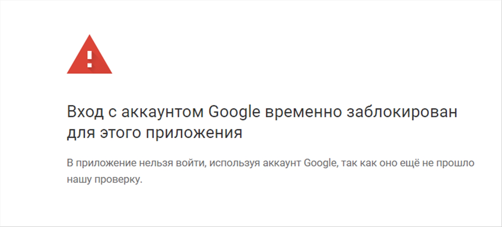 Вход с аккаунтом Google временно заблокирован для этого приложения
