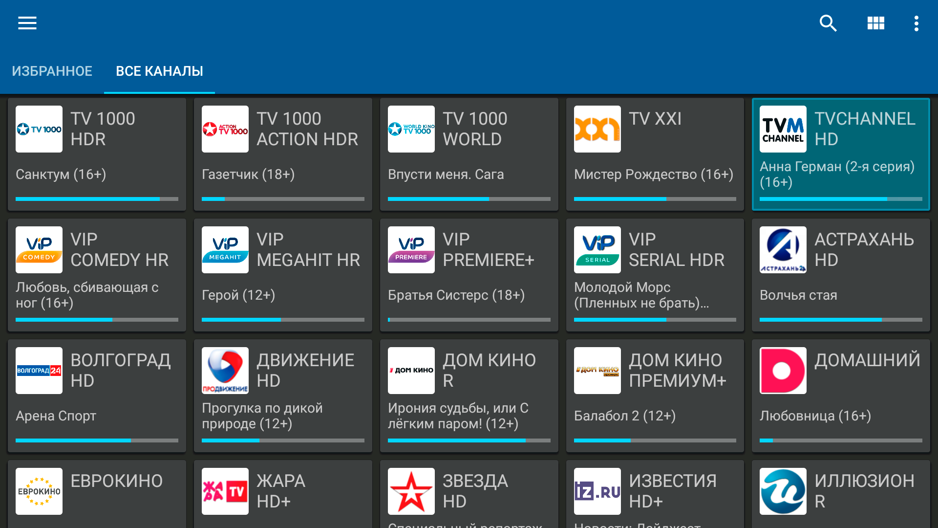 Пример просмотра доступных каналов в качестве HDR