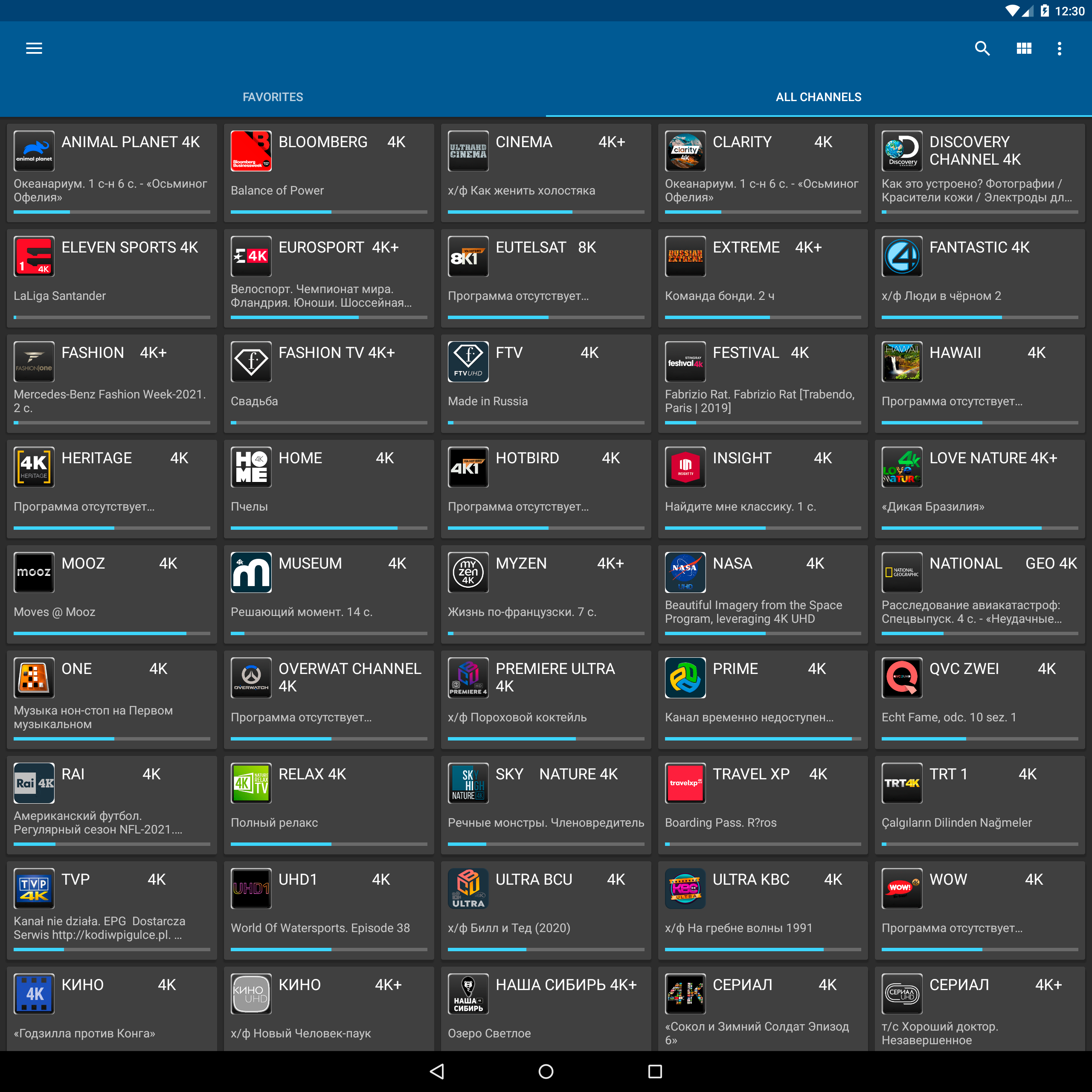 Примеры просмотра доступных каналов в качестве 4K UHD