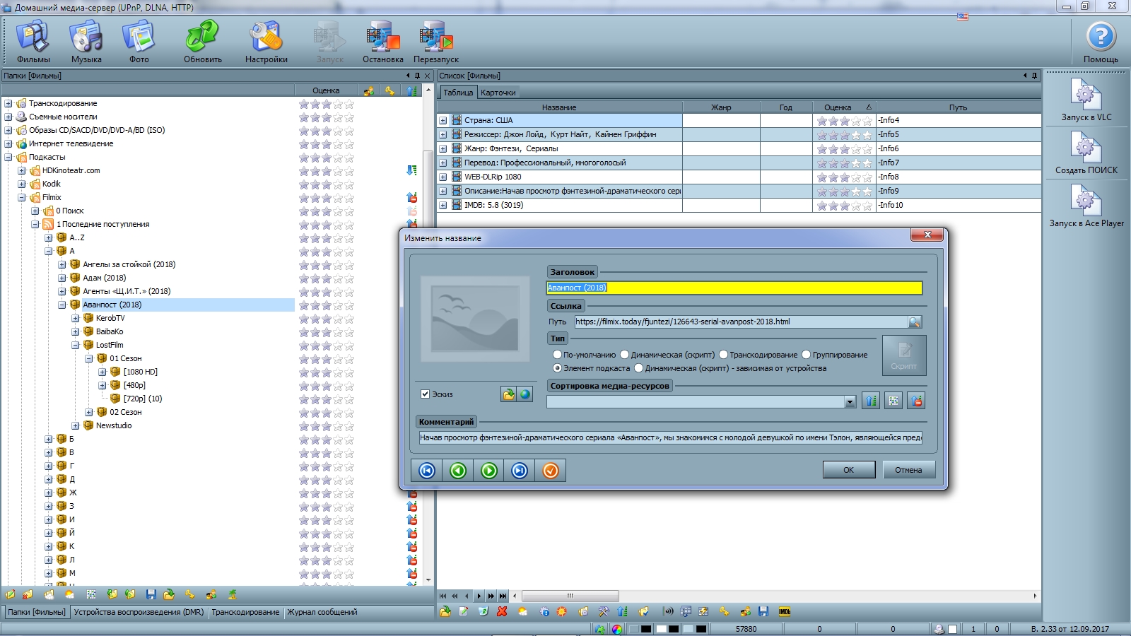 Телевизор не видит ссылки на видео, пишет потеряна связь с сервером,хотя тестовое транскодирование идёт нормально.