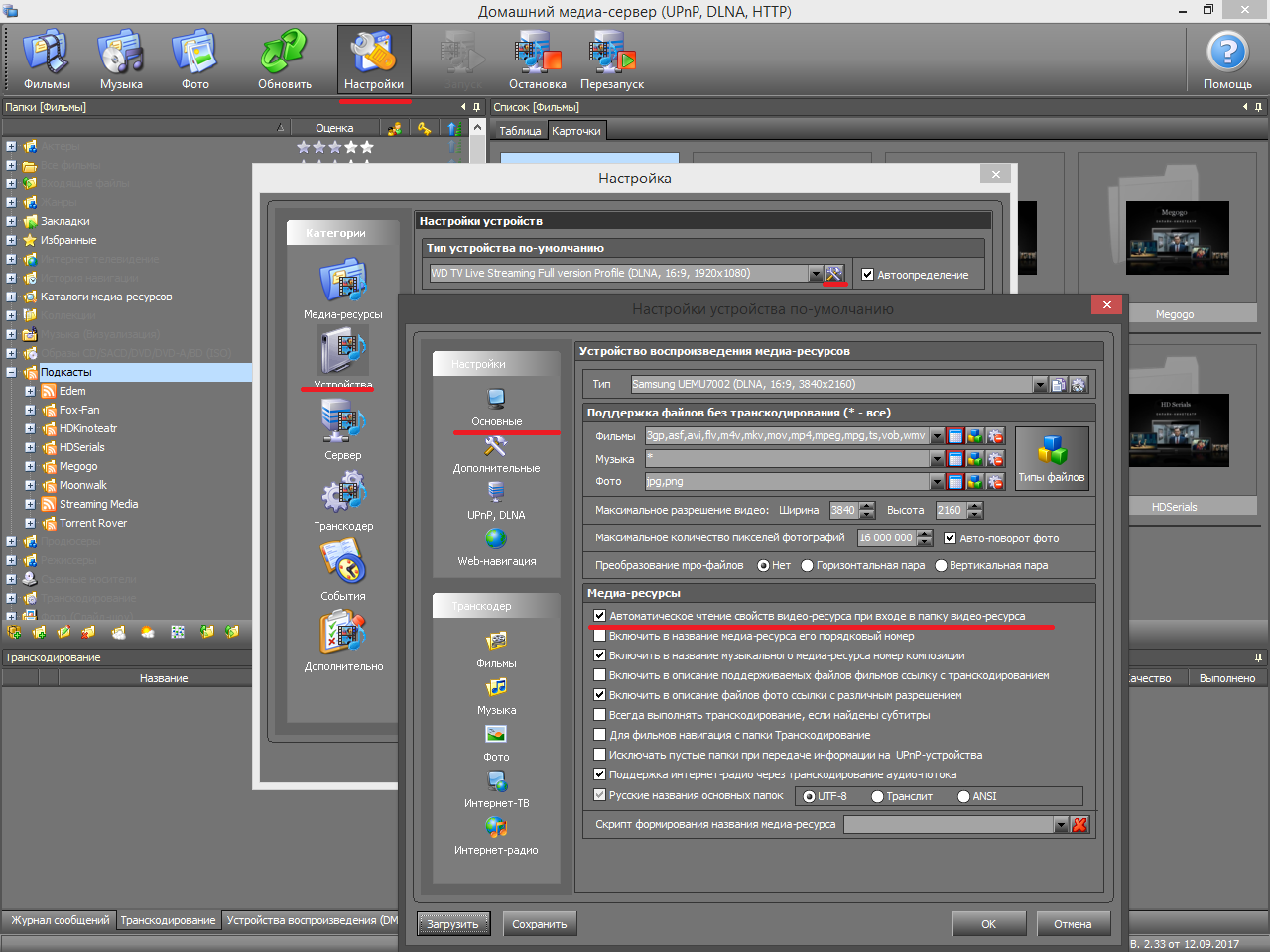 Так же привожу пример настроек подкастов
