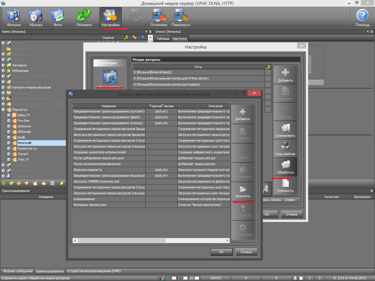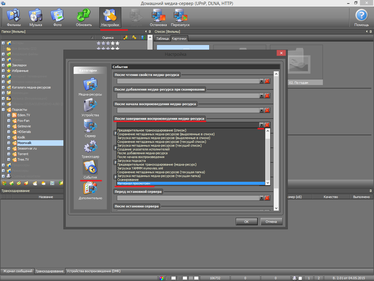 4. Незабываем выставить профили транскодирования в самом устройстве, чтобы исключить нагрузку на ПК