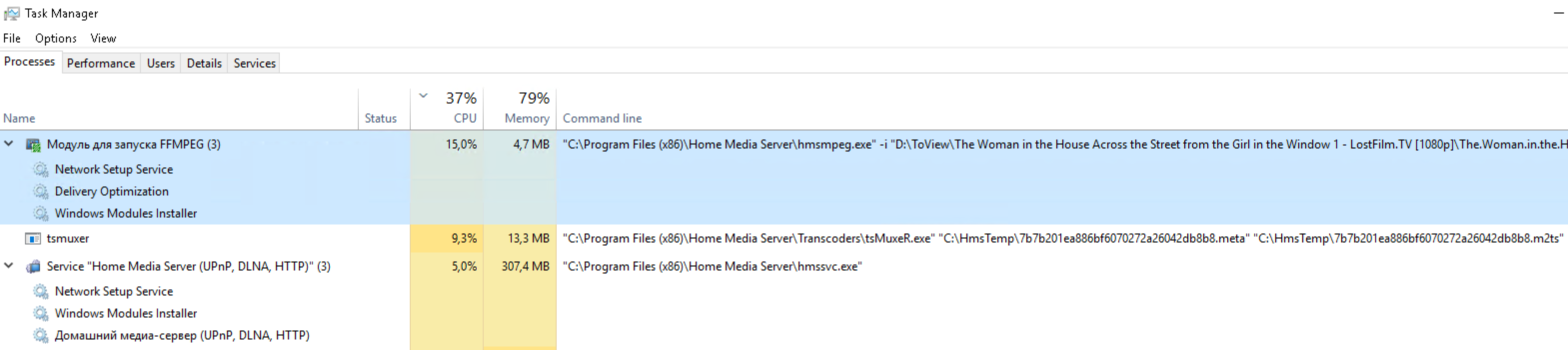Такая проблема - практически на всех фильмах запускается транскодирование. В приложении HMS, запущенном на сервере на панели "транскодирование" оно не отображается, то в списке задач видно запуск tsMuxeR.exe и в папке HMSTemp появляется m2ts и файл с расширением meta (см. скриншот):