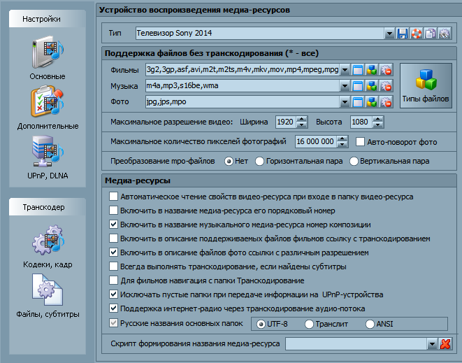 Приобрел телевизор SONY BRAVIA KDL-32W705C и заинтересовался темой с DLNA. Поставил HMS, вначале была проблема с фильмами divx, но решилась загрузкой профиля для телевизоров sony 2014 года с официального форума hms. Дальше стал пытаться завести интернет телевидение с Ace stream, sopcast и подкасты. Вот тут возникла проблема. Во всех этих случаях воспроизведение на телевизоре запускается, но показывает черный экран без звука при применении профиля транскодирования AceStream (ACEPLAYER - FFMPEG) с или без загрузки свойств файла. Если использовать профили AceStream без изменения видео, то на телевизоре воспроизводится звук, но экран по прежнему черный. Подкасты без транскодирования телевизор показывает не все - на многих каналах пишет "воспроизведение невозможно". На смартфоне под Андроид с транскодированием все работает (плейер VLC), если без транскодирования, то часть каналов пишет что аппаратное декодирование не возможно, и тогда изображение глючит.