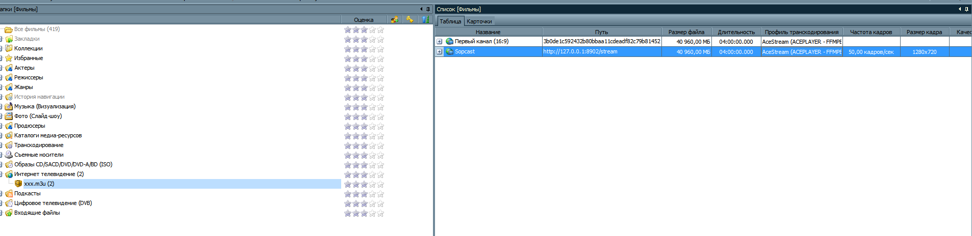 Делаю вывод, что телевизору по каким-то причинам не нравится видео поток, который транскодирует hms в случае профилей AceStream. Прошу помощи, что можно посмотреть, проанализировать в поисках причины и какие возможны настройки или действия, помогающие устранить проблему. На панели транскодирования ничего кроме обработанного объема не отображается в случае использования профилей AceStream, поэтому информации не хватает.