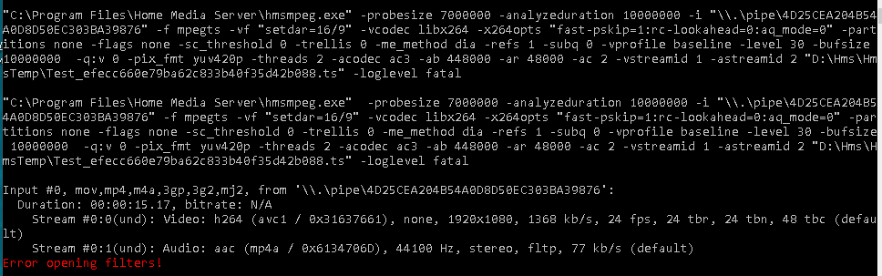 Output #0, mpegts, to 'D:\Hms\HmsTemp\Test_efecc660e79ba62c833b40f35d42b088.ts':