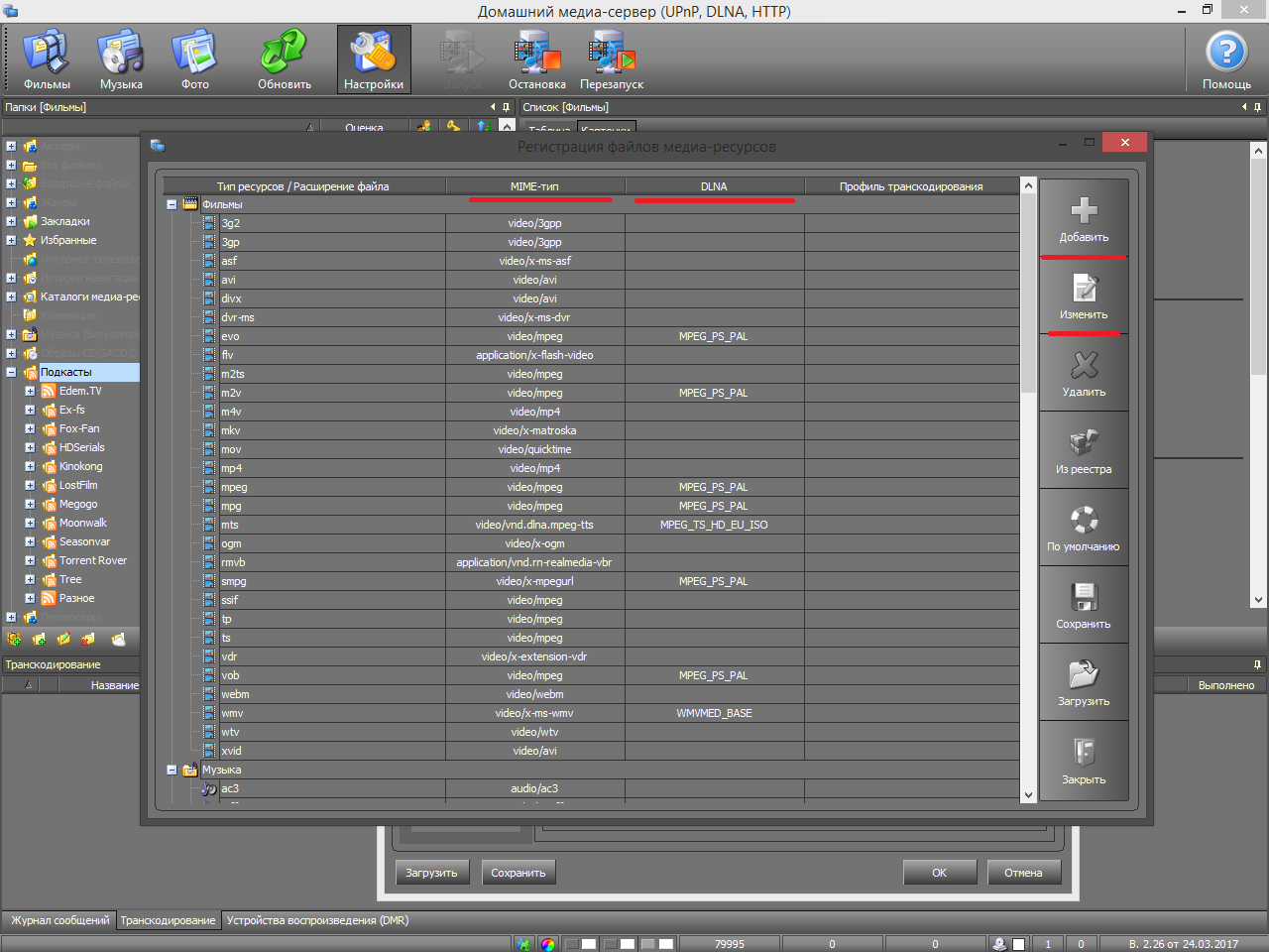 Я предчуствовал нутром что то подобное, поэтому для профиля Fork Player и указал чтобы его ставили сразу для телека и для устройства по умолчанию. А сделал так из-за того, что при установке MIME-типа для подкаста открывается таблица регистрации файлов именно для устройства по умолчанию, а не из настроек для своего телека, что мне сразу и не понравилось, если там разные MIME-типы.