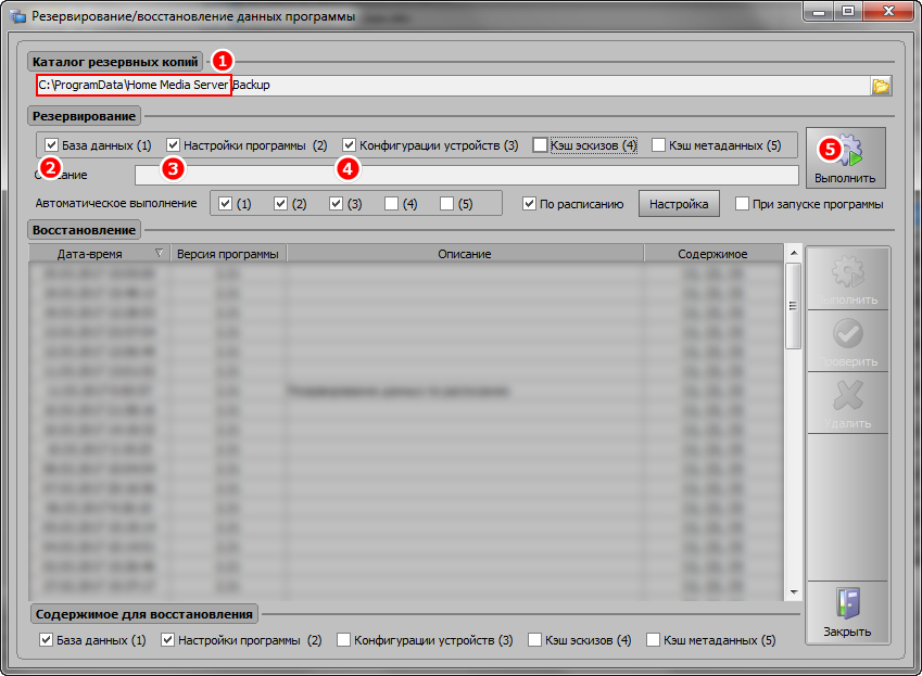 В приведенном примере каталогом хранения базы будет: c:\ProgramData\Home Media Server.